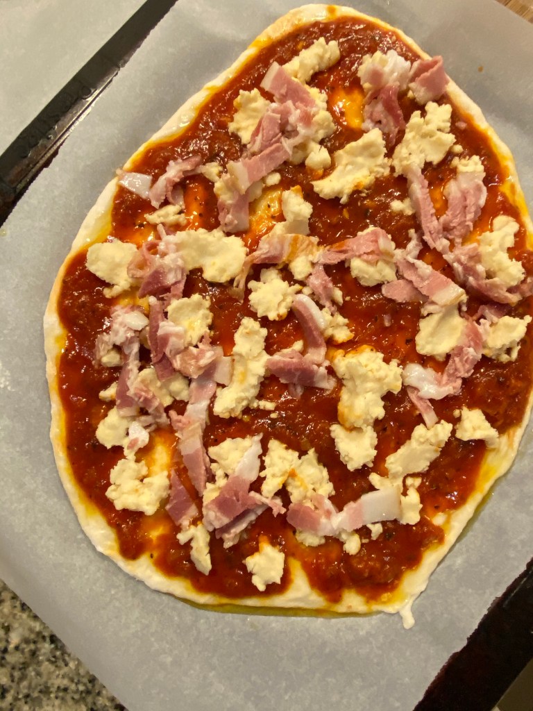 For Stay At Home fun for the kids, try Pizza Kit! Comes with fresh dough that kids get to shape into their own pizzas. Nothing pre-rolled! Complete with rich tomato sauce, pizza cheese, and bacon. Needs one day lead time to order so order today for the weekend! #pizza #mealkit #fearlessapron