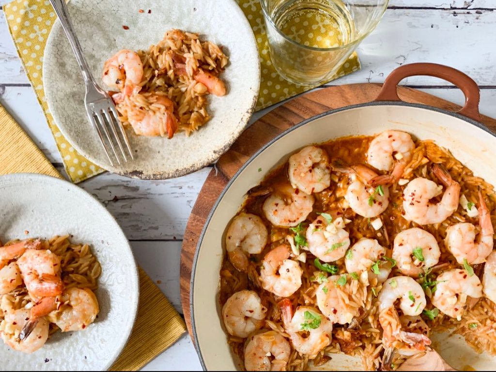 “It’s so good! Used one pack of Made-From-Scratch Prawn Stock which I’m sure made this extra tasty and made the orzo more orangey than the scampi in the NYT Cooking photo! And it’s so easy to make. Used Barilla Risoni from Santis. Super duper saraaap!!”